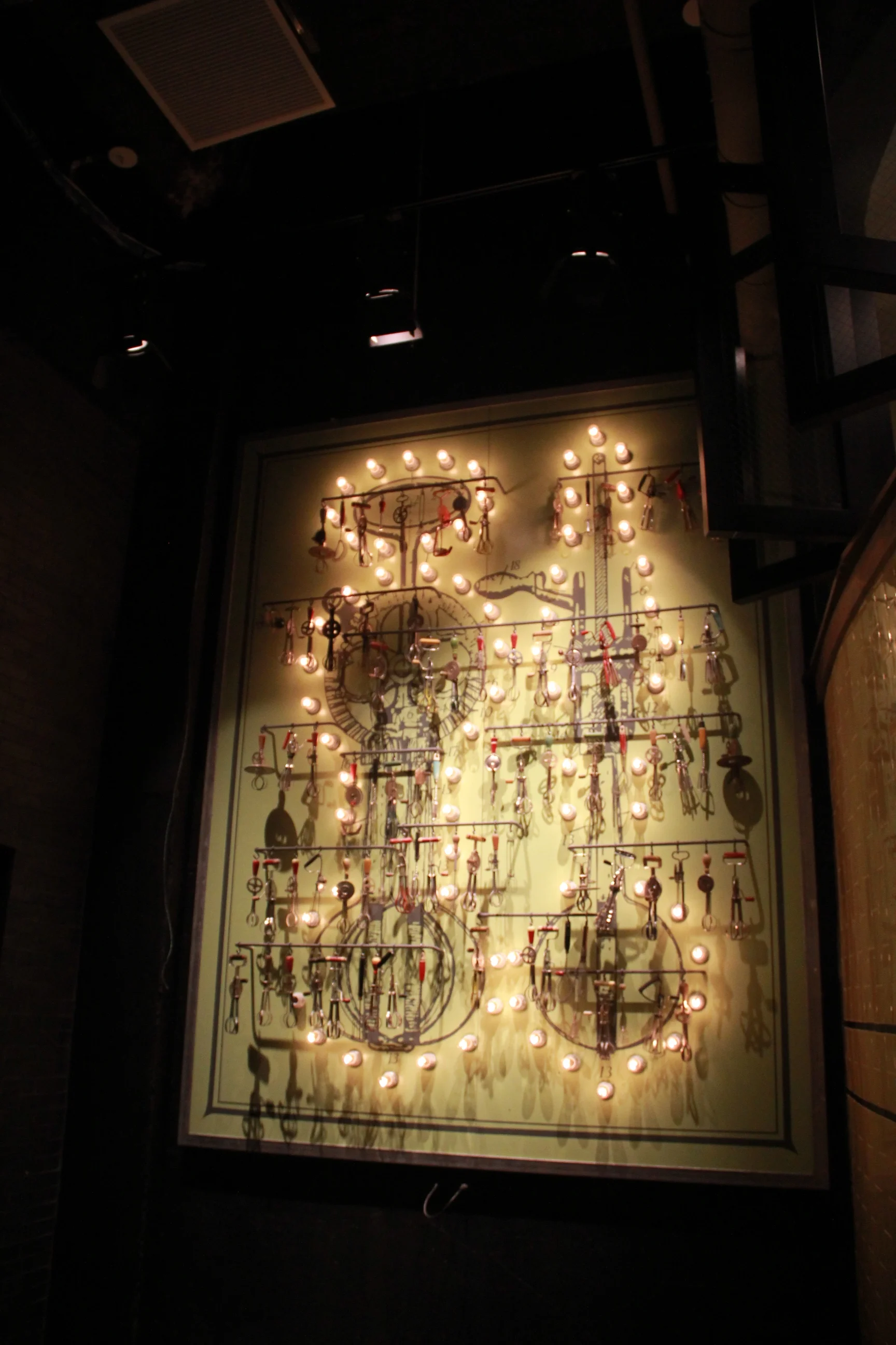 Over the years, we have developed a great expertise in electrical components, adding sound, light, motors, to a variety of complicated objects. We have our UL license for what are called "portable lamps", and the expertise to do many larger items, including light boxes, back-lit acrylic cut to any shape. We're also great at motorizing objects, as well as creating video and projection installations, providing content or formatting yours.